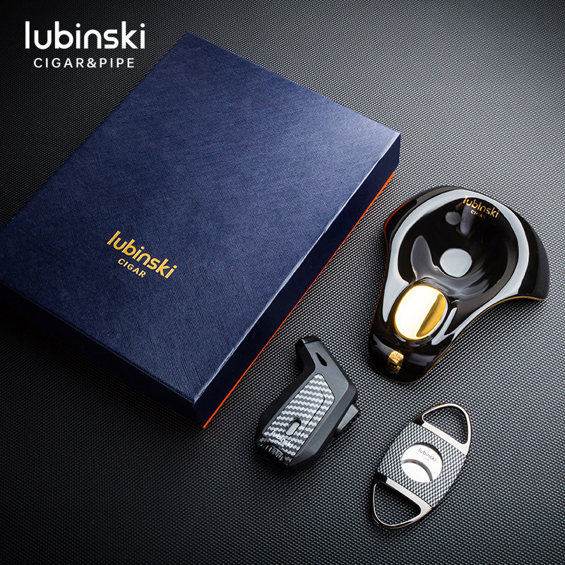 LUBINSKI Rubinski cigar scissors straight to lighter ceramic ashtray starter three-piece gift box set