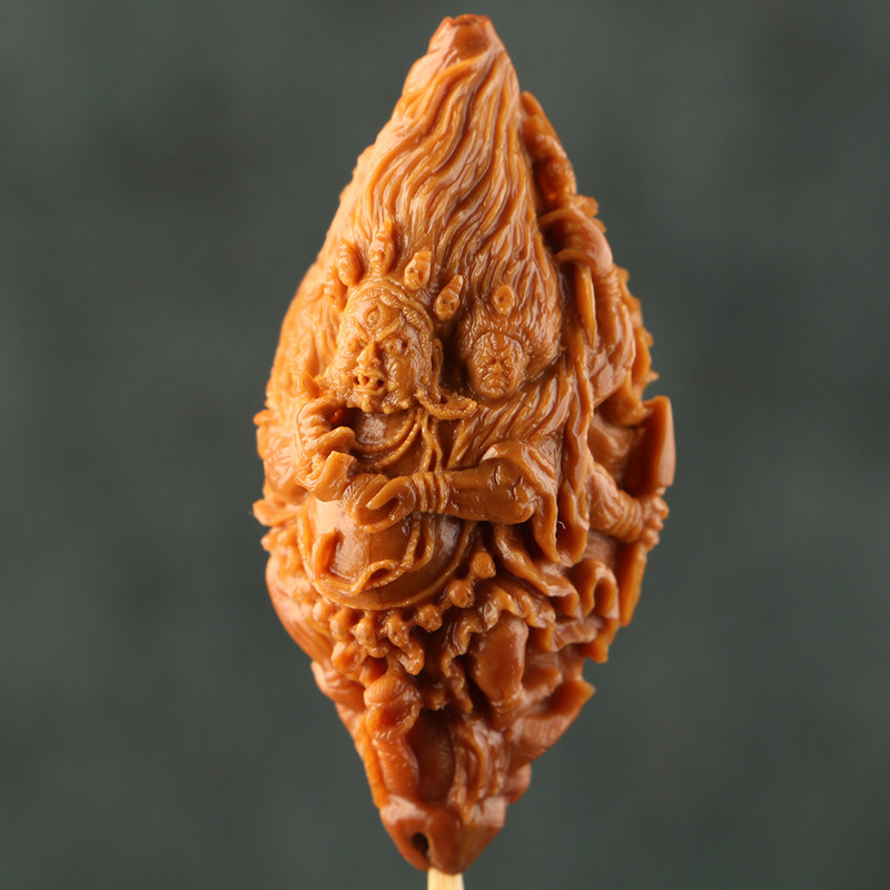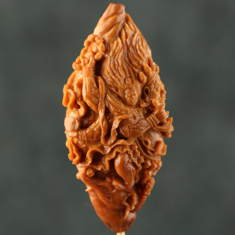 2 3x4 6cm (large black days) Hu Xiangdong works olive nuclear sculpted three flowers old oil nuclear single seed pendant