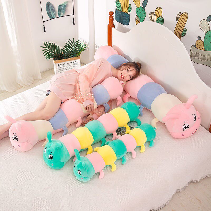 Cute caterpillar fur suede toy Pillow Cloth Doll Doll doll strip pillow girl bed to sleep and clip legs