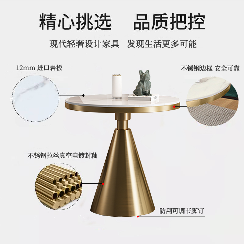 Imported slate small round table small apartment stainless steel dining table modern light luxury negotiation tables and chairs balcony leisure round table and chairs