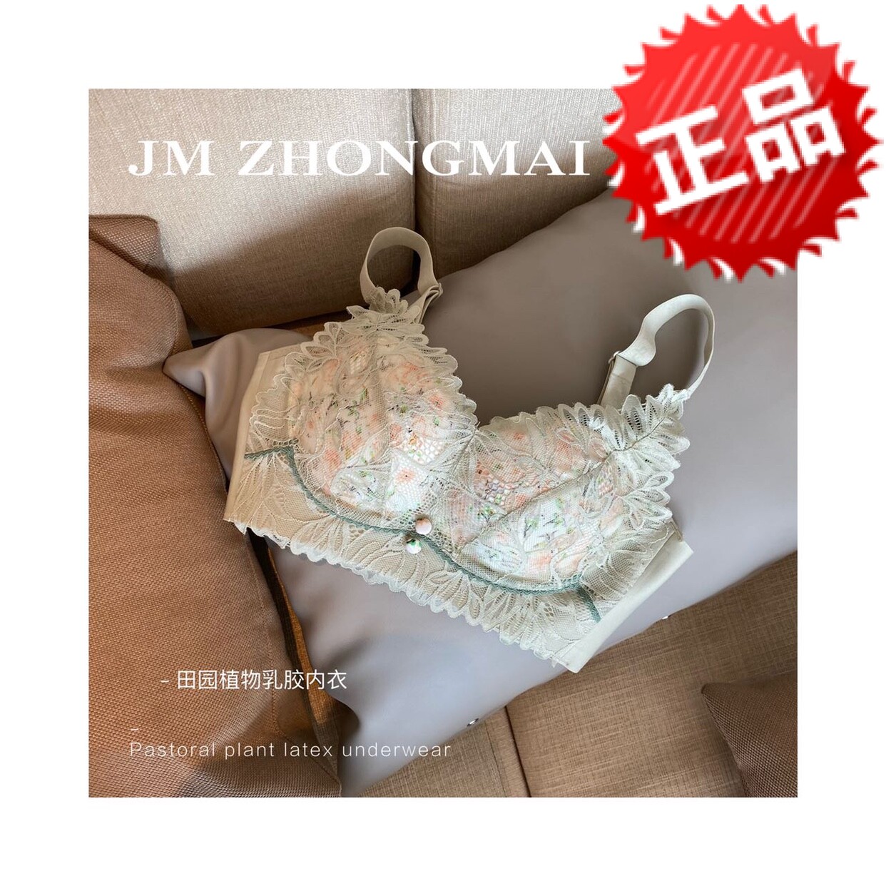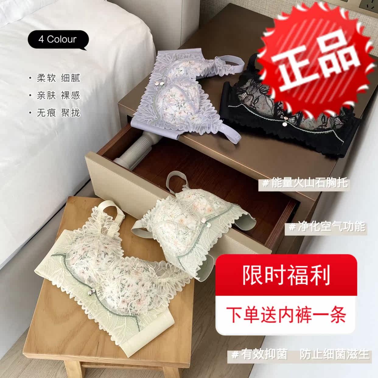 JM Zhongmai Youpin Pastoral Plant Latex Underwear Small Chest Shows Large Upper Holder Lace Adjustable Clothing Breast Bra Bra