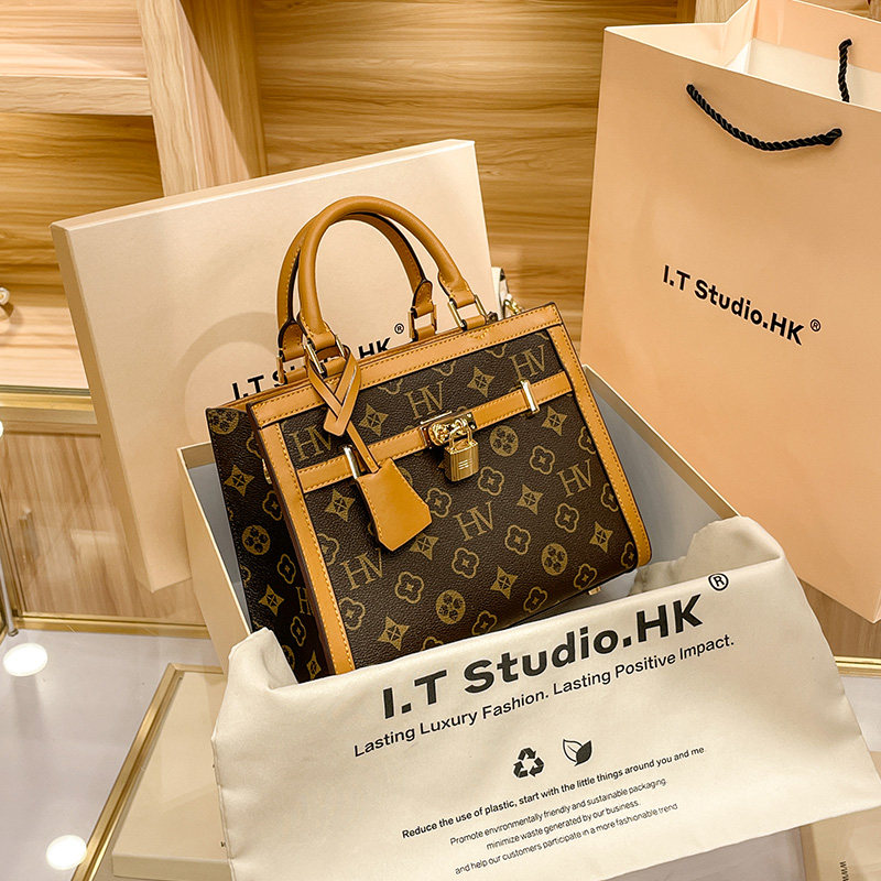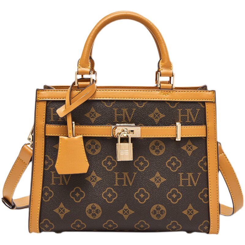 French DRCO leather casual handbag New autumn and winter fashion retro-old flower slope-shoulder tot bag