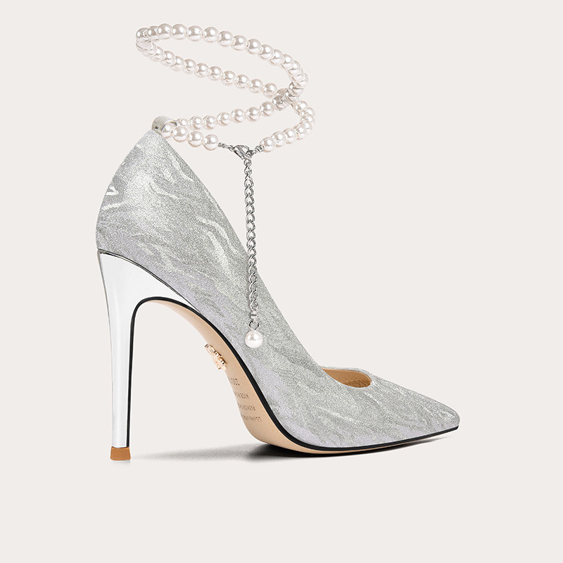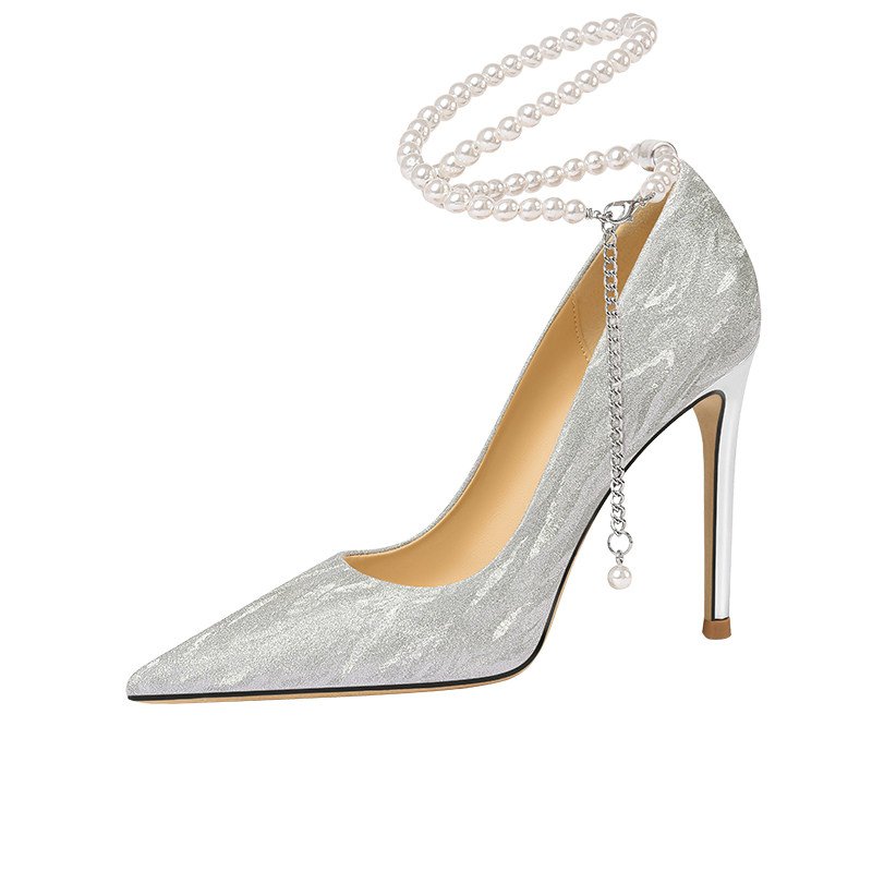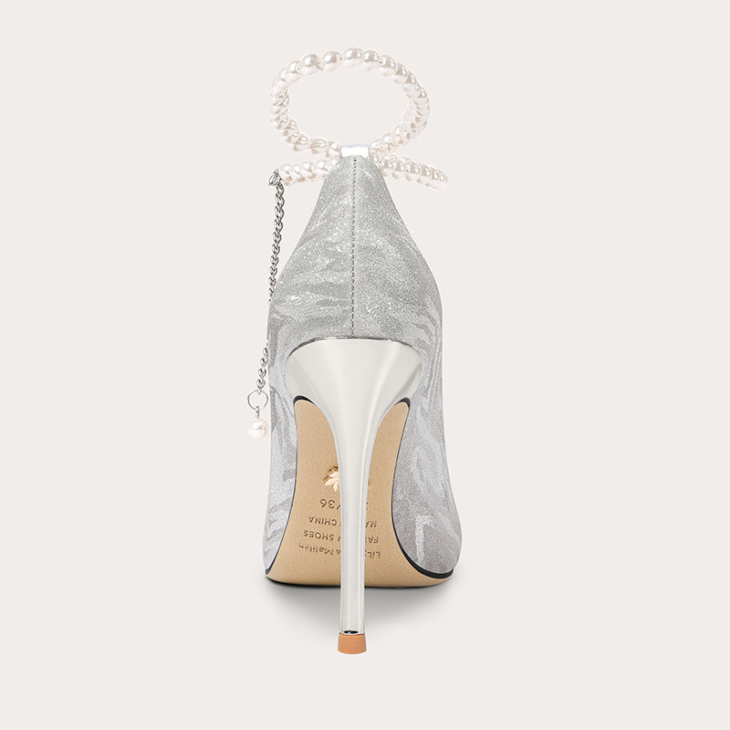 Lily Wei (mindful) Silver High heel Shoe Girls Fine heels Wedding Shoes Pearl Strap Valentine's Day-Taobao