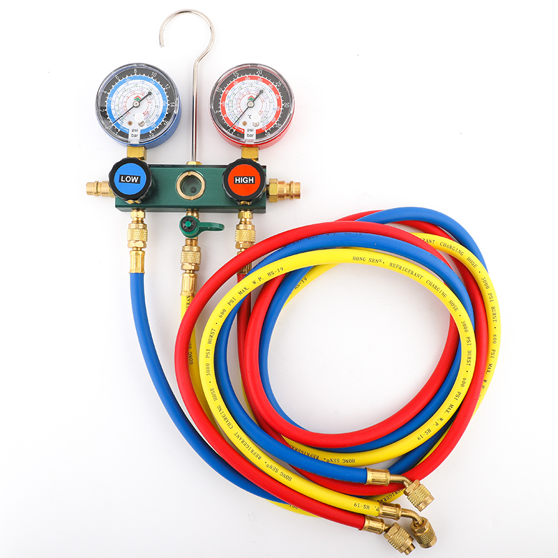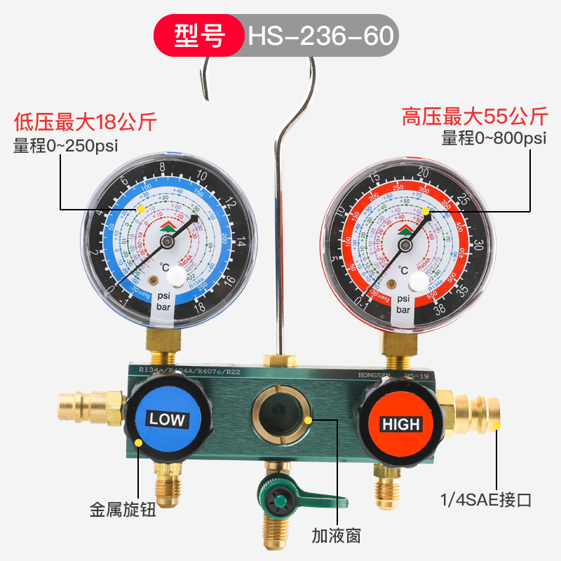 Hongsen HS-236A automotive fluorine meter double meter valve air conditioning dosing meter refrigerant watch R134A fluoride gauge car watch