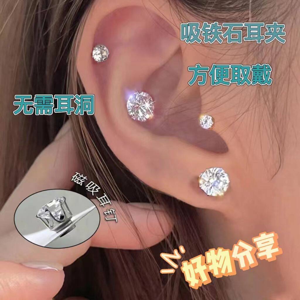 Xu Mengjie's same magnetic cochlear stud ear clip ear bone stud giant flash cold wind diamond-studded ear stud earrings trend explosion
