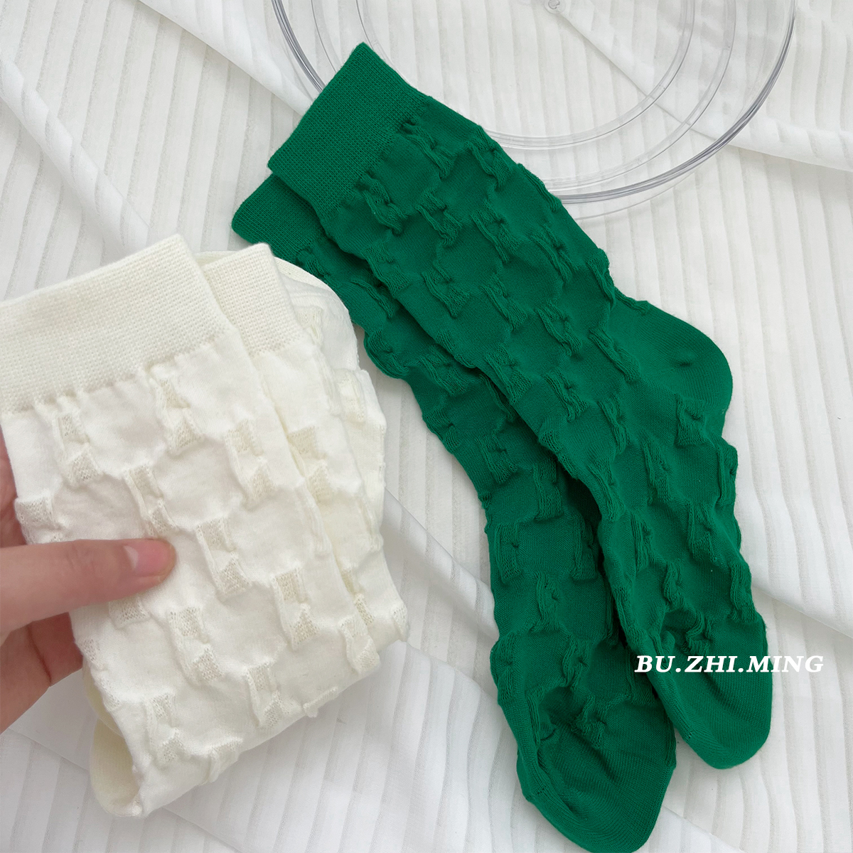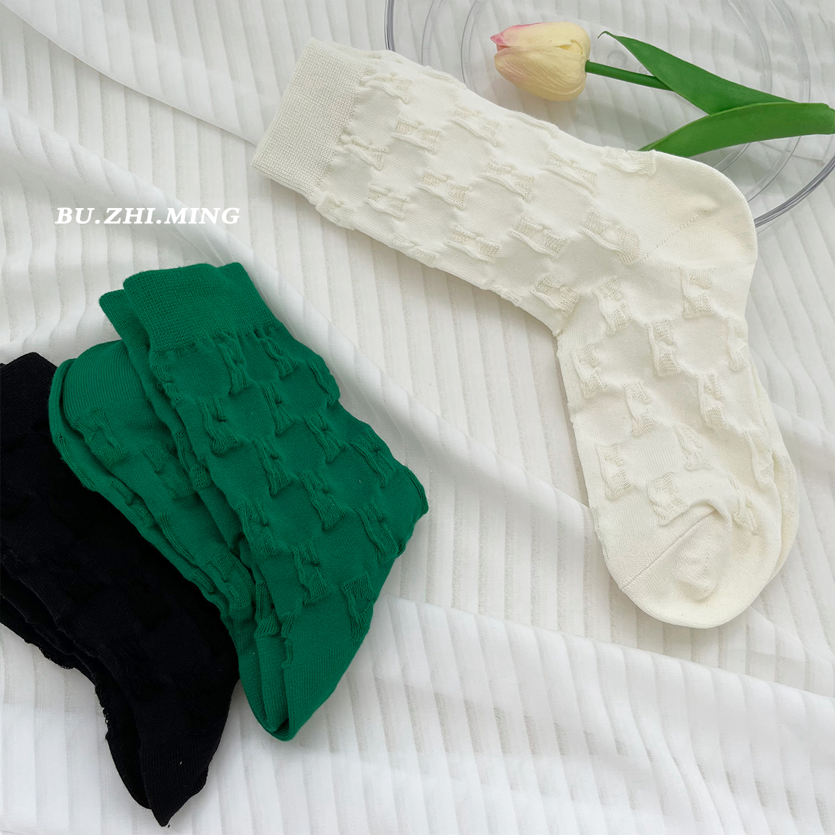 Socks Design Feeling Lady White Summer Thin Stereo Relief Japanese Square Lolita Stockings in Tide