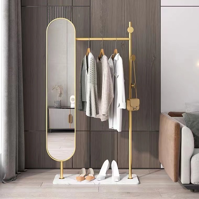 Nordic ins floor rotating full body mirror hanging clothes hanger integrated minimalist home bedroom full body mirror clothes hat holder mirror