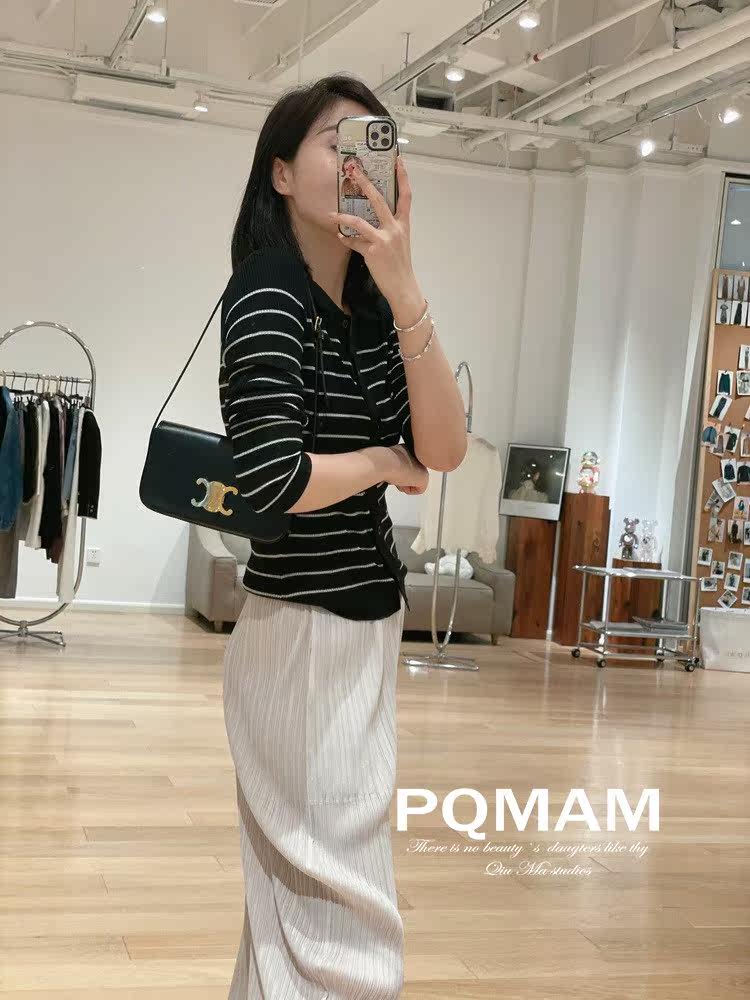 60 branch CHAO fine and fine spinning pearl mulberry silk striped blouse ~ retro-striped cardiovercoat