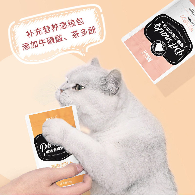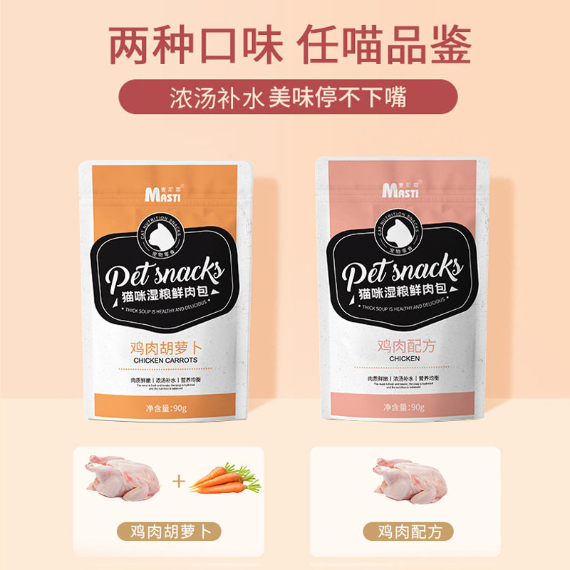 Cat wet food moisturizing fresh meat bag 90g cat snack cat canned soup chicken diced carrot wonderful package cat strip