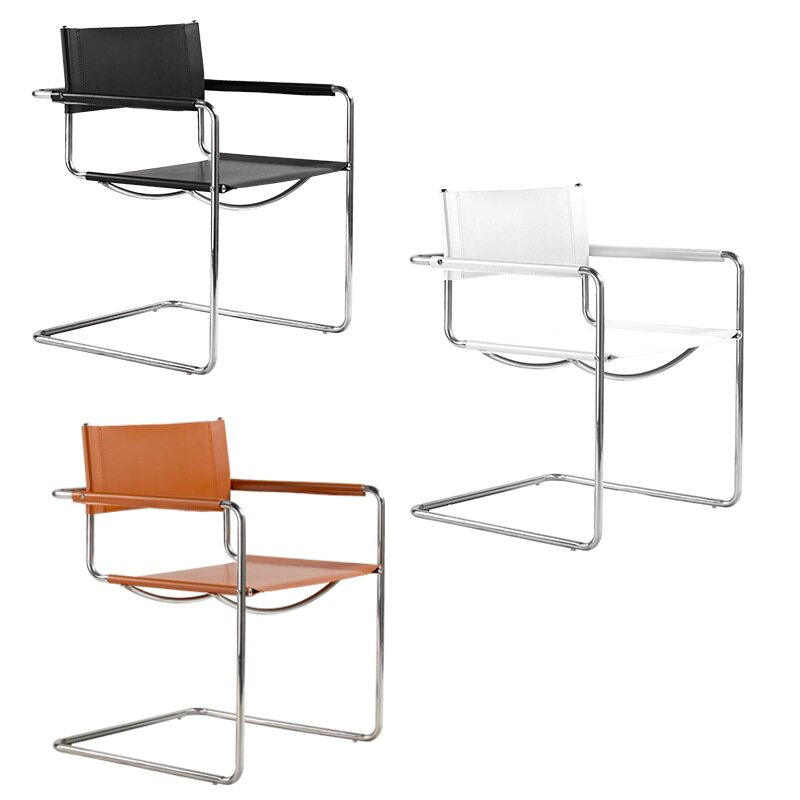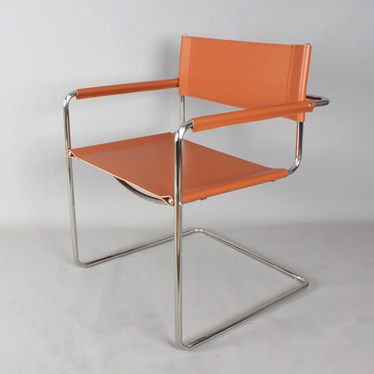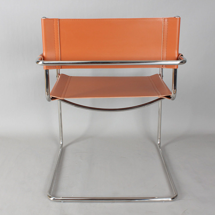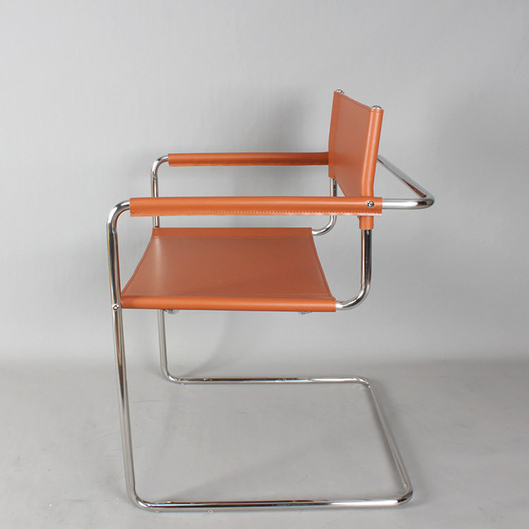 Medieval stainless steel tube black leather chair light luxury ins style with armrest Mr. chair modern minimalist single