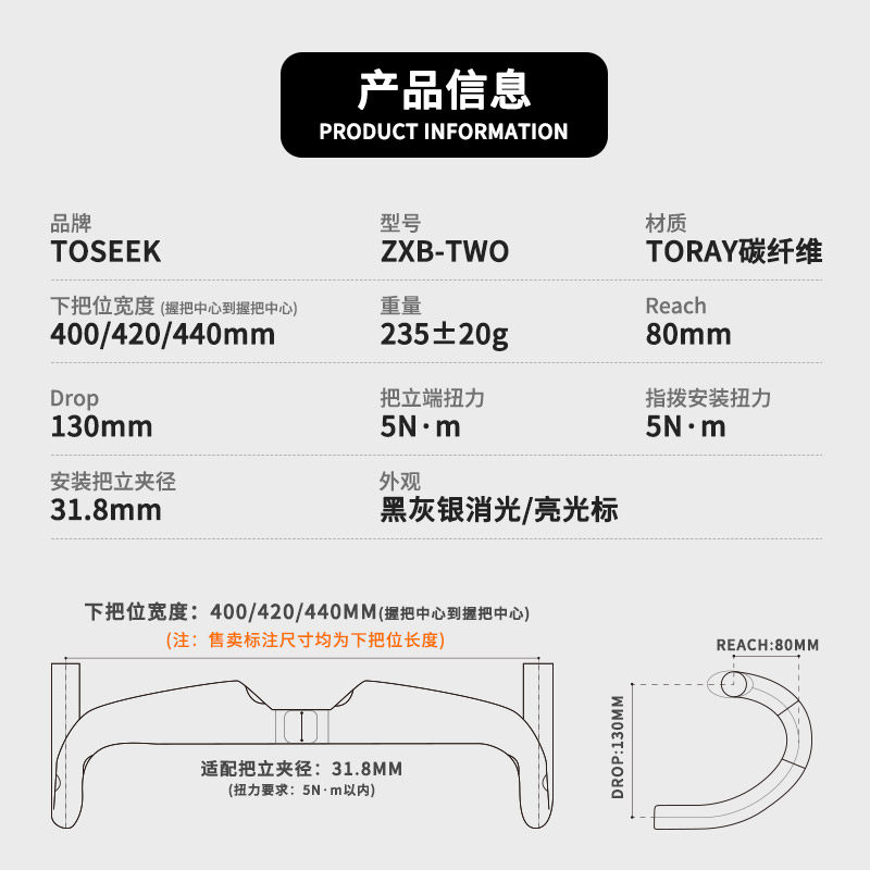 TOSEEK carbon fiber road car bend inner line bicycle sports car handle cross ZXB - TWO dark light