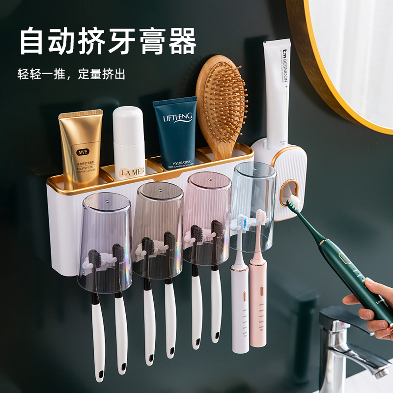 1573 toothbrush shelving free of punch mouthwash cup toothbrushing cup hanging wall toilet wall-mounted shelving family suit-Taobao
