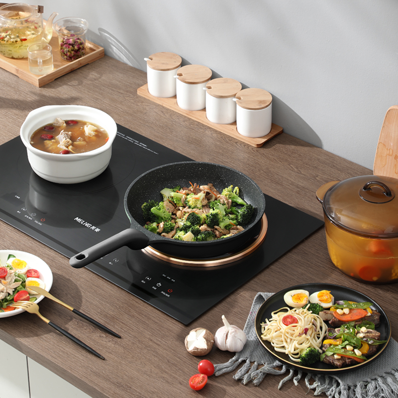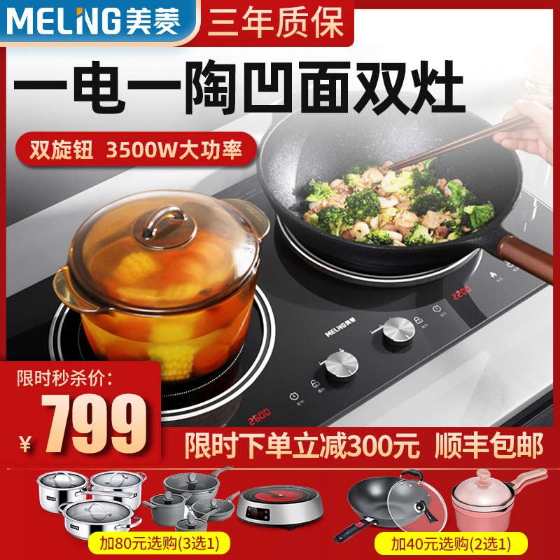 Maring Embedded Electromagnetic Oven Double Mouth Gas Stove Domestic Frying Pan Integrated Inlaid Electric Hearth High Power Concave Black Crystal Stove