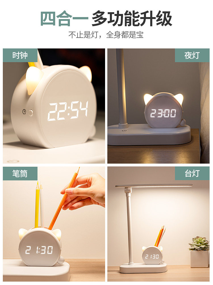 (w) kitty clock L-type pen holder table lamp (GJKH101054)