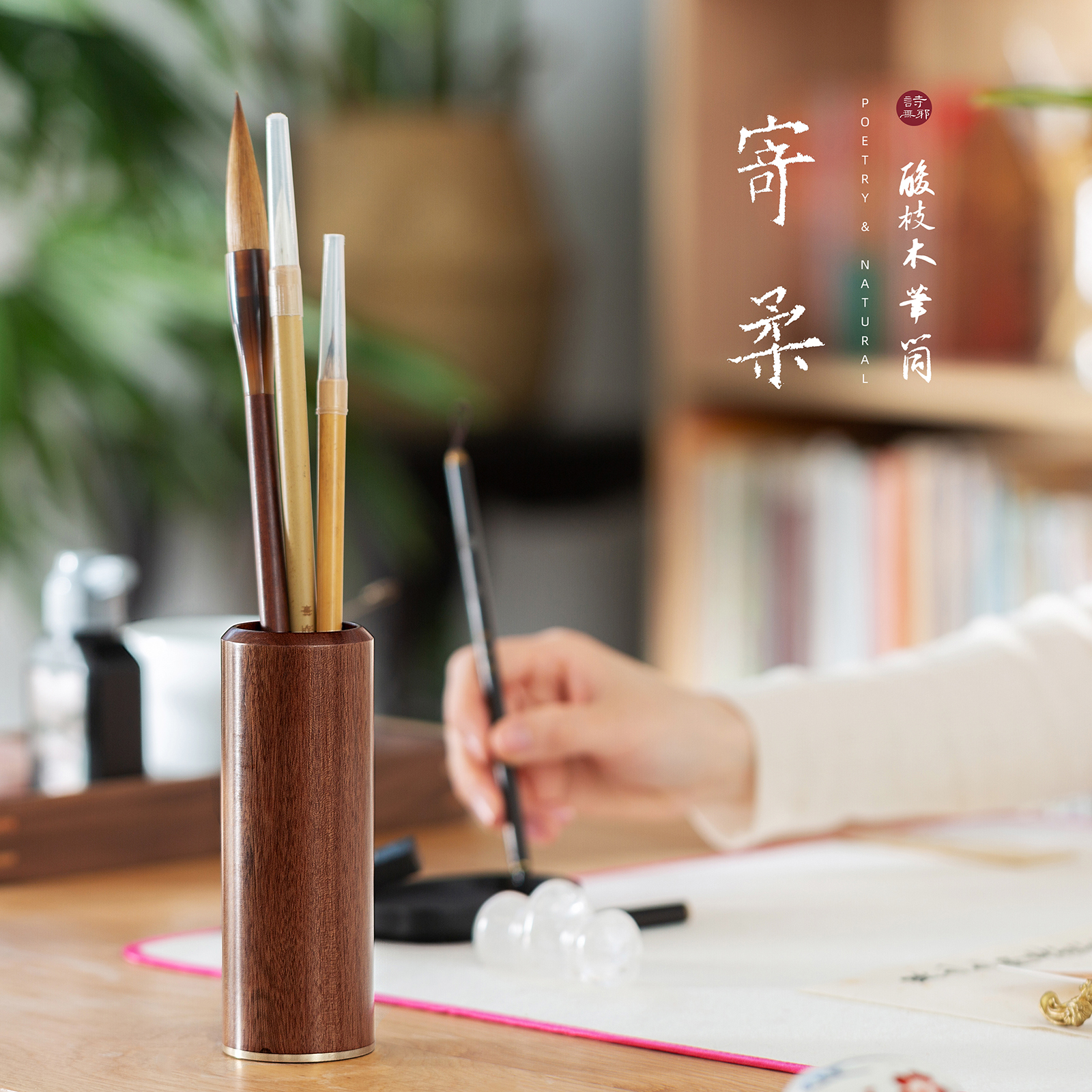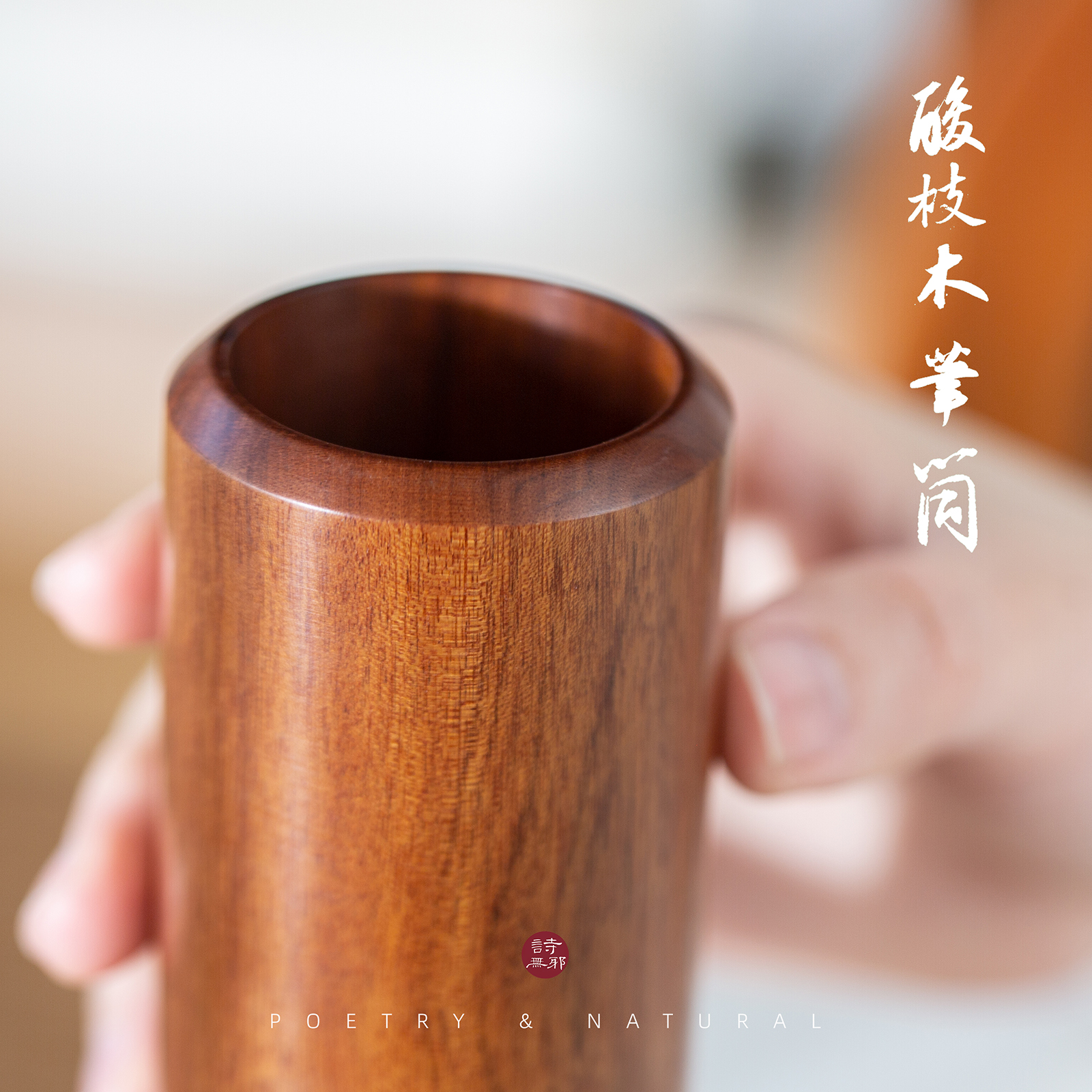 (Ji Rou) African sour branch solid wood pen holder high-grade sense log simple brush storage round poetry innocent classroom