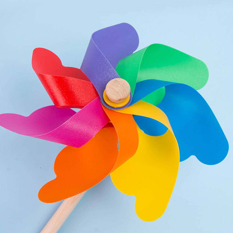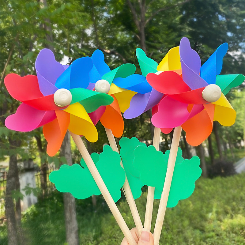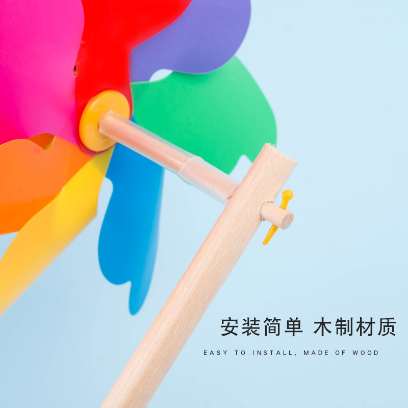 Windmill toy children's rainbow outdoor courtyard color kindergarten hand holding wooden pole rotating colorful big windmill decoration