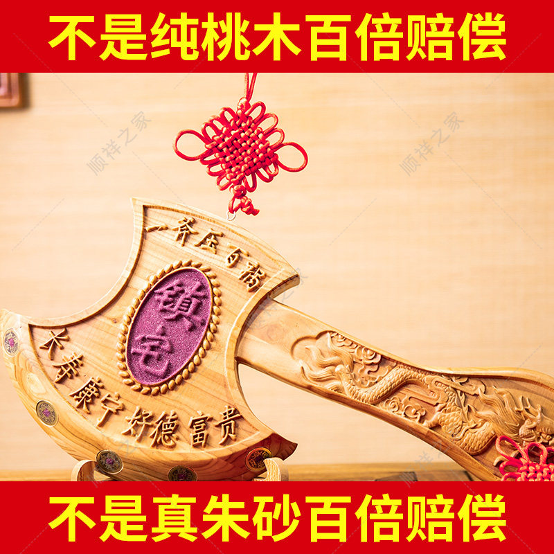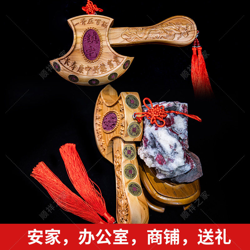 Authentic Peach Wood Axe fidelity Zhu sand inlaid with Five Emperors Money Pendant Wedding Sitting Fojo moving Tomahawk House Swing Piece-Taobao