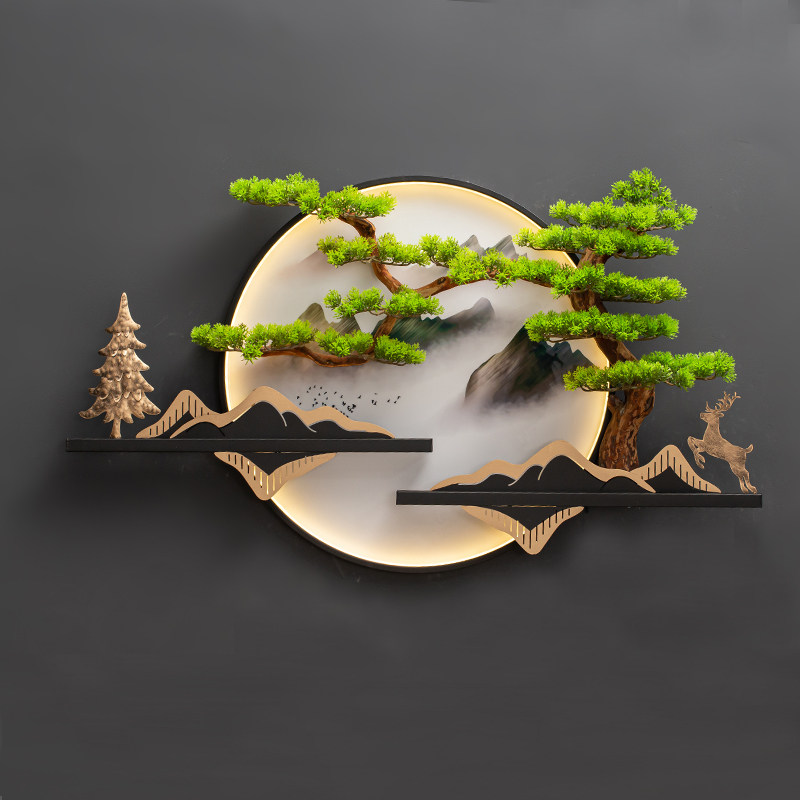 New Chinese decoration hanging painting sofa background wall hanging decoration living-room Xuanguan three-dimensional greeting passenger pine pendant round decorative painting-Taobao
