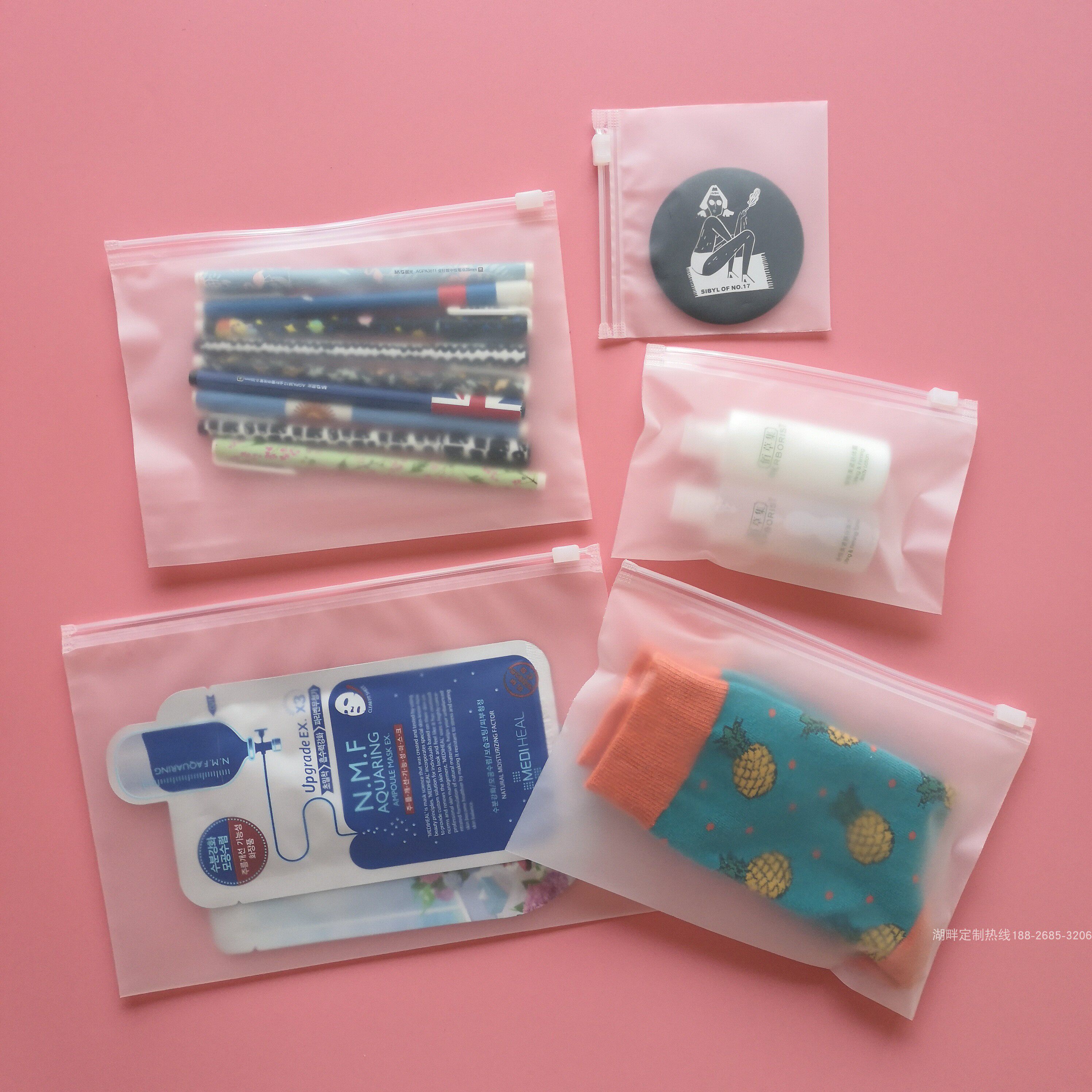 Thickened horizontal frosted zipper bag spot square ziplock bag underwear socks ice sleeve bag