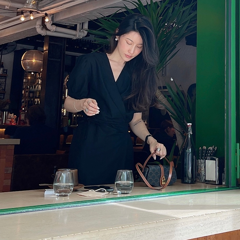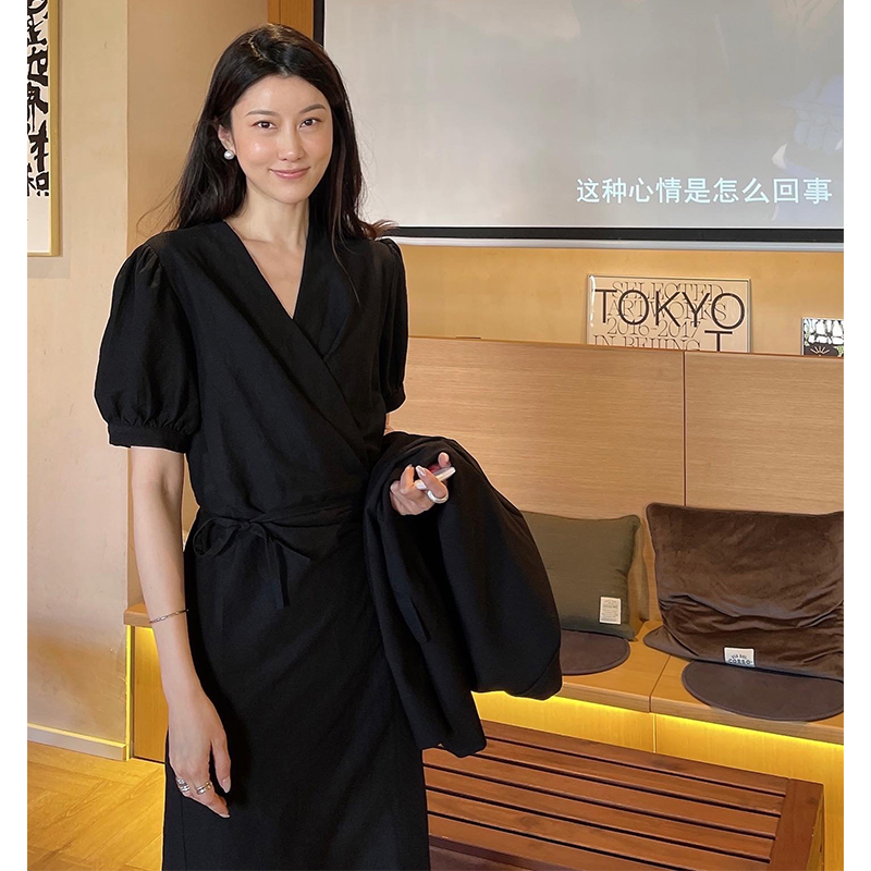 Crocch Black Tea Sweet Girl Heben Wind Black Dress Open Window Material New Model