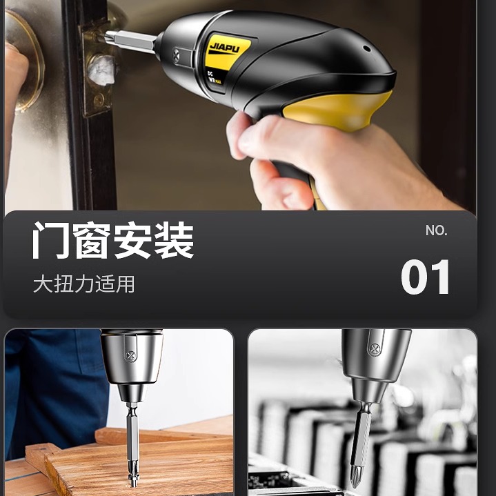 Jiapu electric screwdriver with forward and reverse adjustment and rotatable body to meet different work needs. Suitable for home installation, electrical appliance repair, screw tightening, dead corner repair, etc. The machine is newly upgraded.