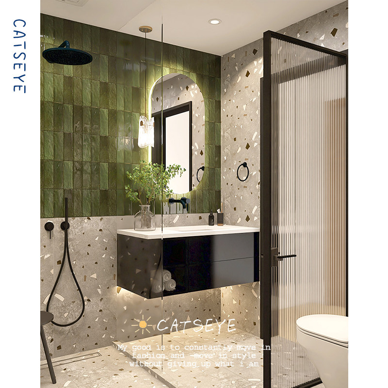 Cat's eye Nordic bathroom terrazzo tiles 600x600 retro small particle bathroom floor tiles matte wall tiles