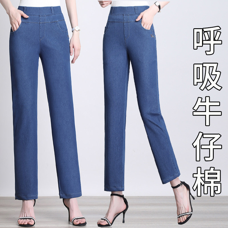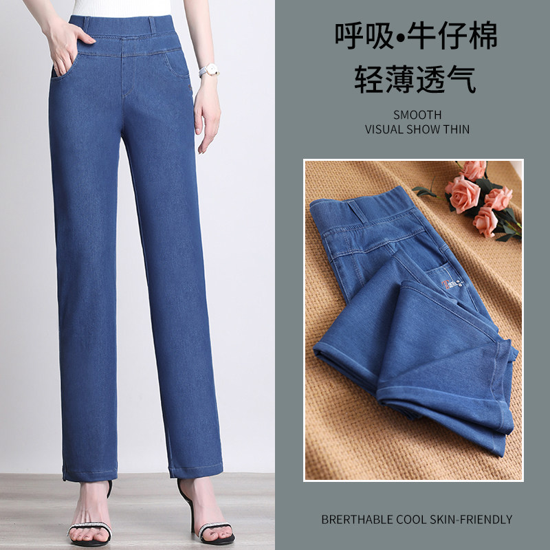 Mom Jeans Summer Thin with high waist straight cylinder loose 90% pants 2022 new elastic tightness waist pants children