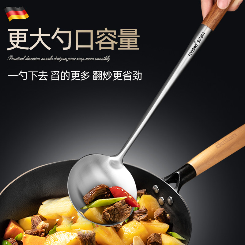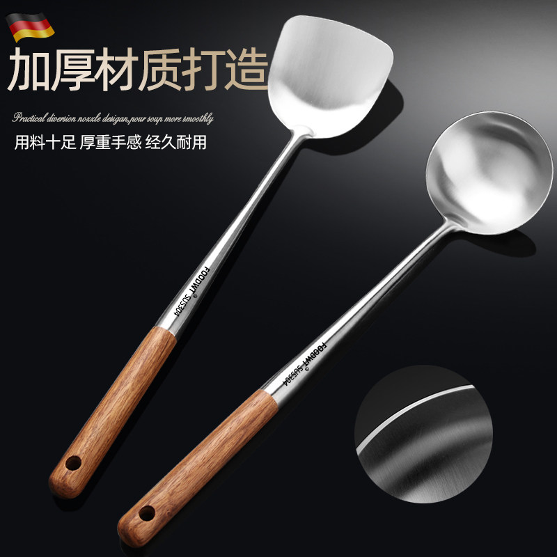 304 stainless steel fried scoop shovel shovel shovel with wooden shank shovel long handle broth spoon cook special spoon