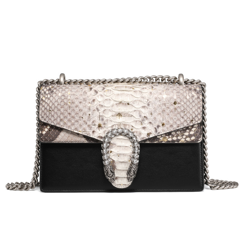 Python leather women's bag small square bag casual fashion light luxury leather shoulder Messenger bag chain bag Dionysus bag new women