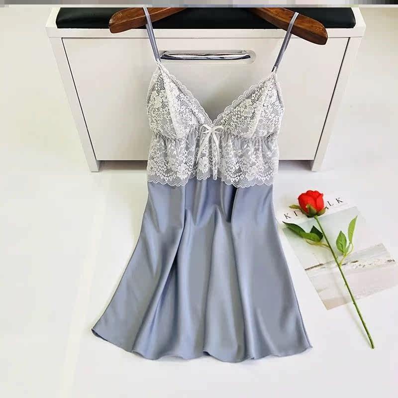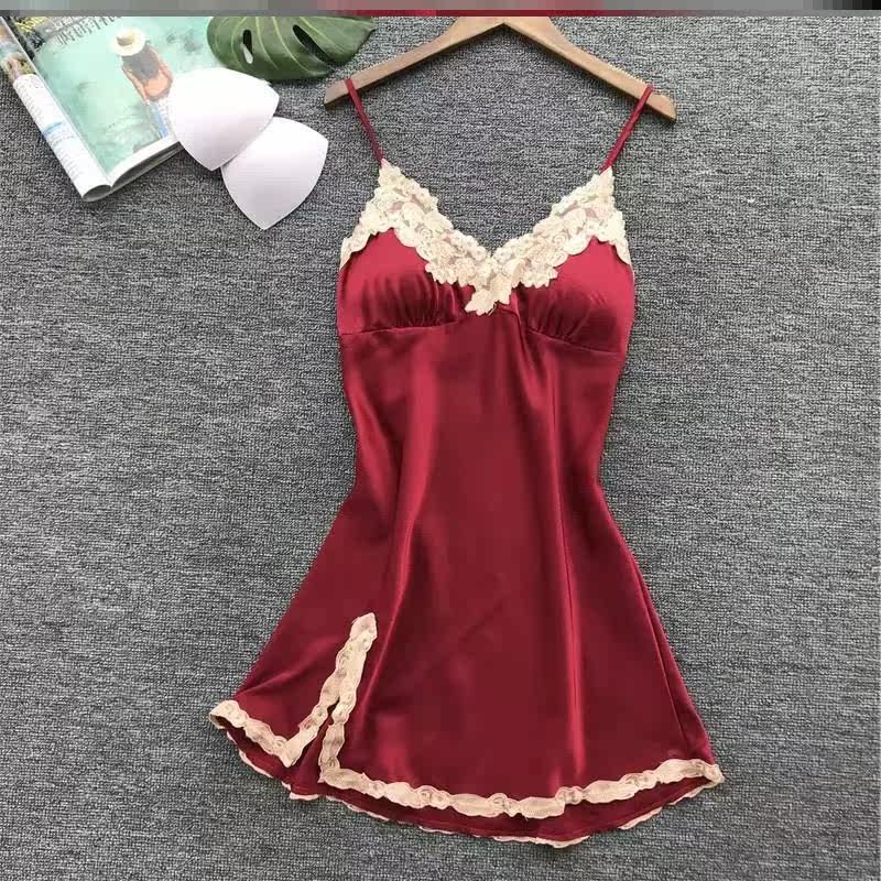 Sexy sleepwear woman with chest cushion for small breasts with ice silk summer harnesses High level sensation lace up and down two sets of sleeping robes