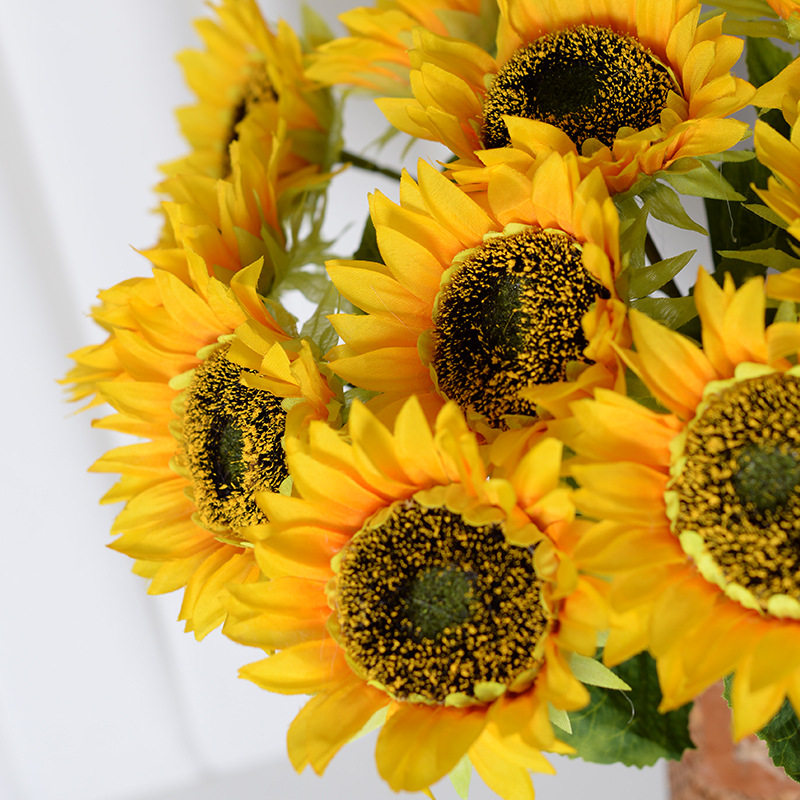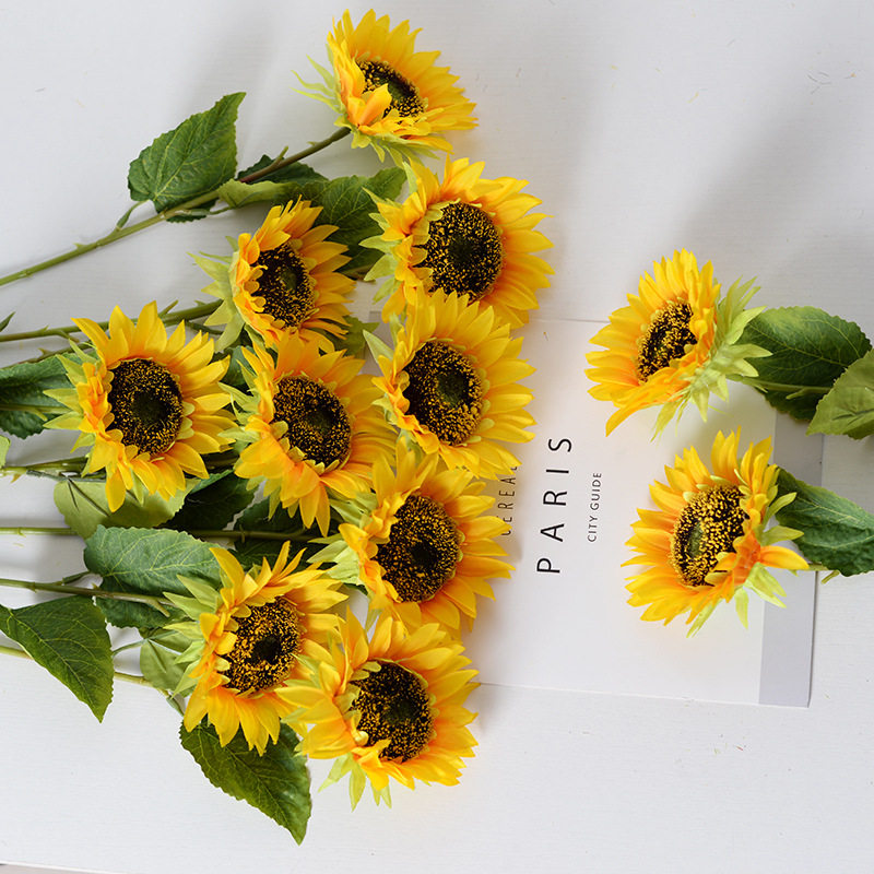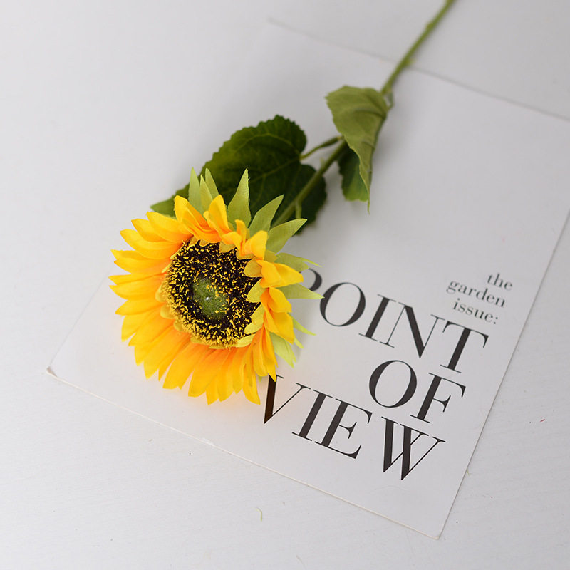 Single head simulation fake flower silk flower sunflower double petal yellow indoor small fresh single flower sunflower home swing