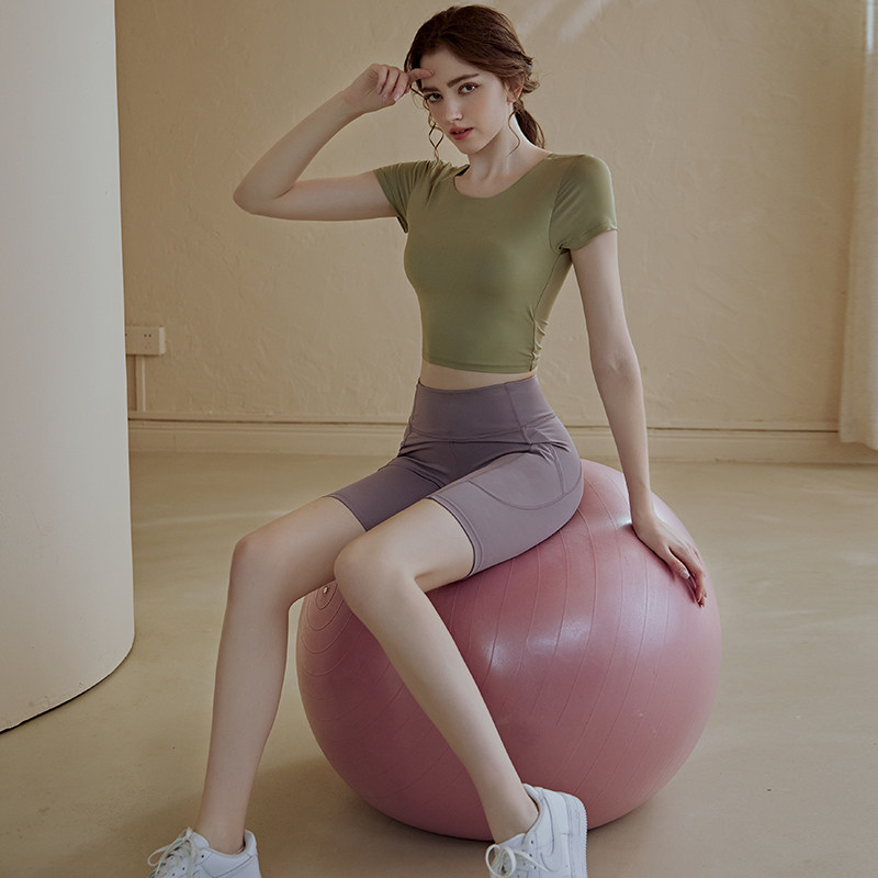 Breath-cushion Yoga suit with breathless elastic strength running sports tops Short sleeves t-shirt fitness suit