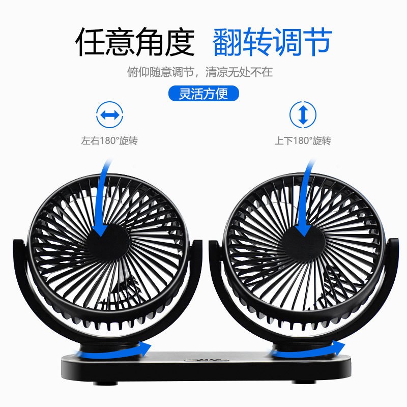 USB Little Fan Silent Office Desktop Small Double-head Great Wind Fan Silent Vehicle Fan Students