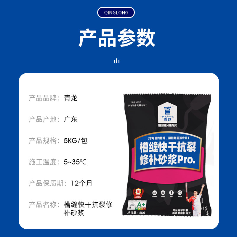 Qinglong slot quick-drying anti-crack repair mortar Pro water and electricity pipeline yin and yang corner arc special quick-drying plugging water leakage