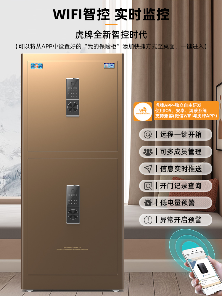China Tiger Safe Household Large Double Door 15m 12m 1m Office File WIFI Remote Safe Into the Wall All Steel Anti-theft Safe Deposit Box Clip Wan New Product