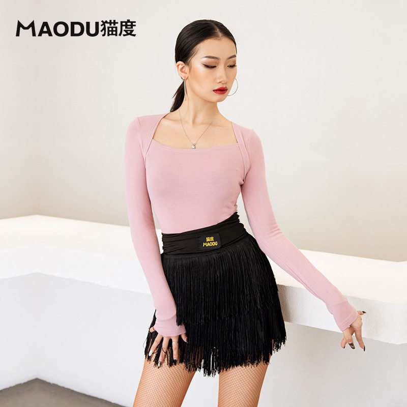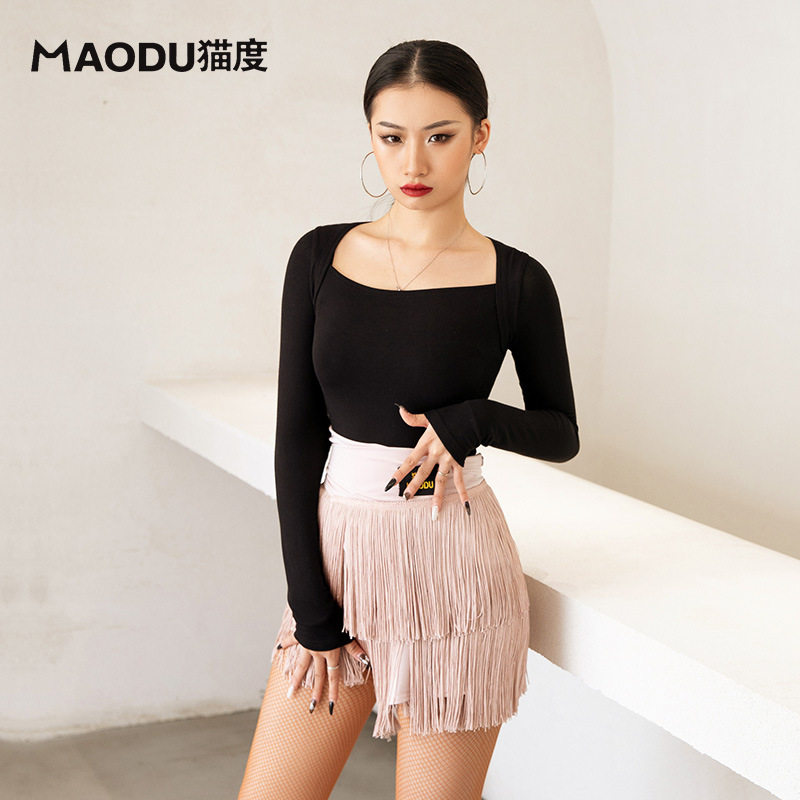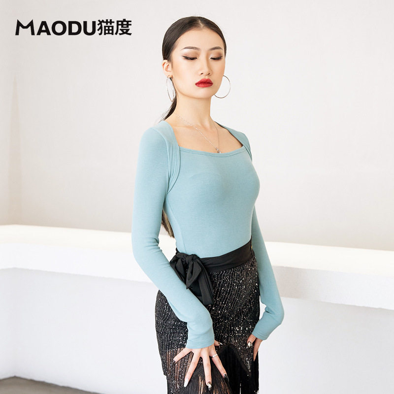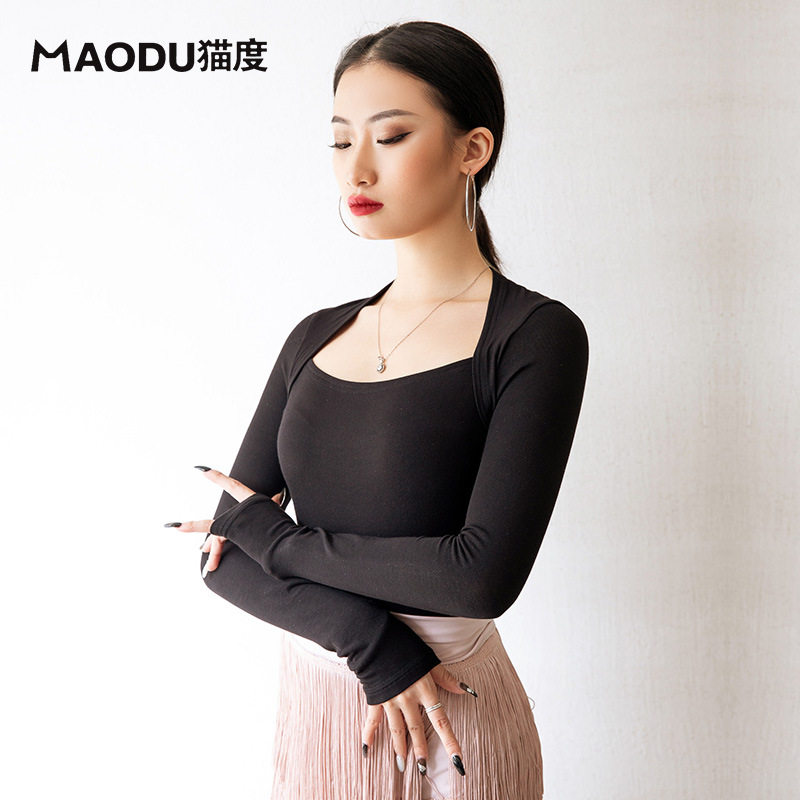 Cat back-shoulder Latin Dance Female Autumn and Winter Modern Modern Modern Sports Costume Training Costume Dance Costumes