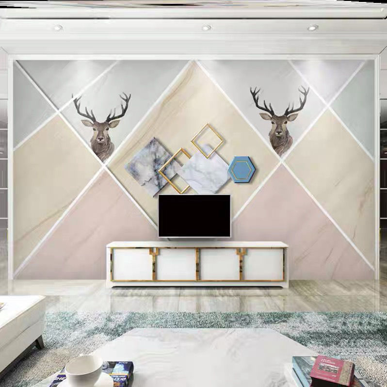 3d living room TV background bamboo wood fiberboard integrated wall panel marble geometric siding panel splicing gusset custom