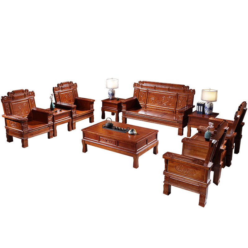 Lotus all solid wood sofa coffee table TV cabinet combination Chinese style living room antique carved rural red toon wood