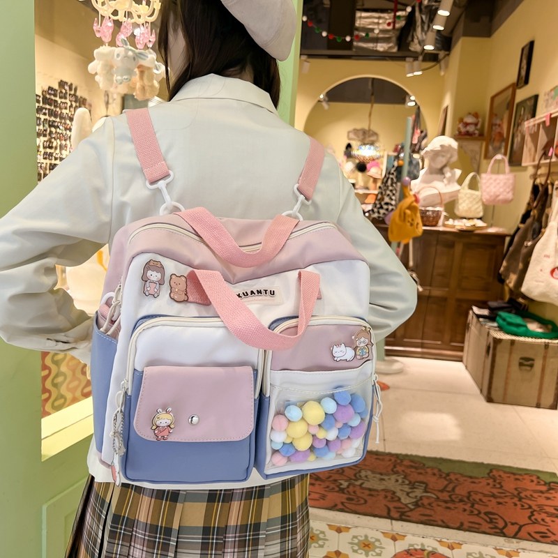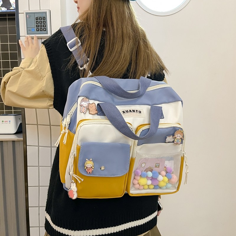 2022 new multi-functional backpack large-capacity Korean version one-shoulder diagonal backpack Japanese students contrast color school bag