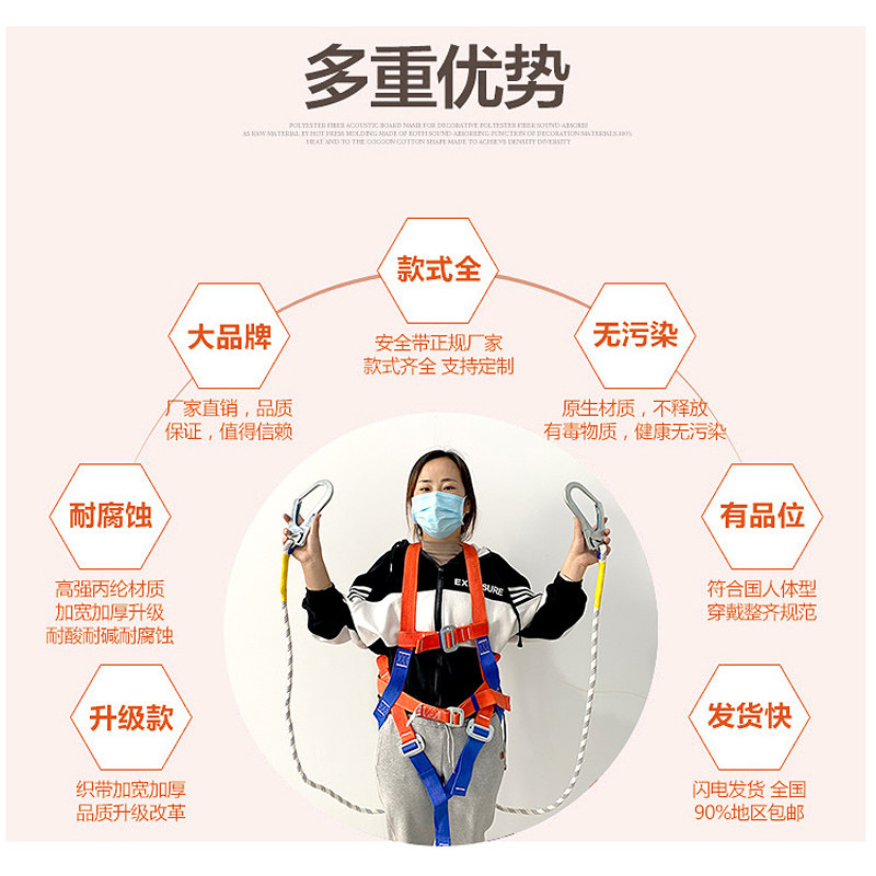 Five-point double hook rope wear-resistant outdoor construction double insurance electric electrician seat belt aerial work air conditioning installation