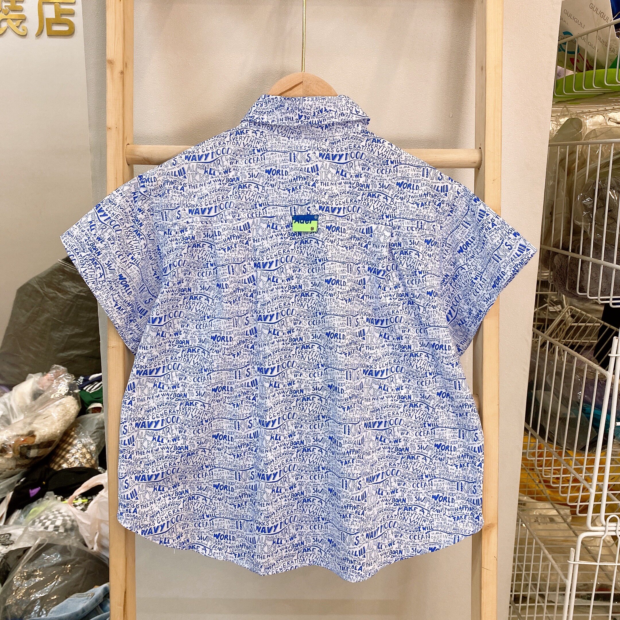 Brand summer 100-170 yards children's medium and big children full of printed letters Hong Kong style loose short-sleeved shirt 6668 can be parent-child