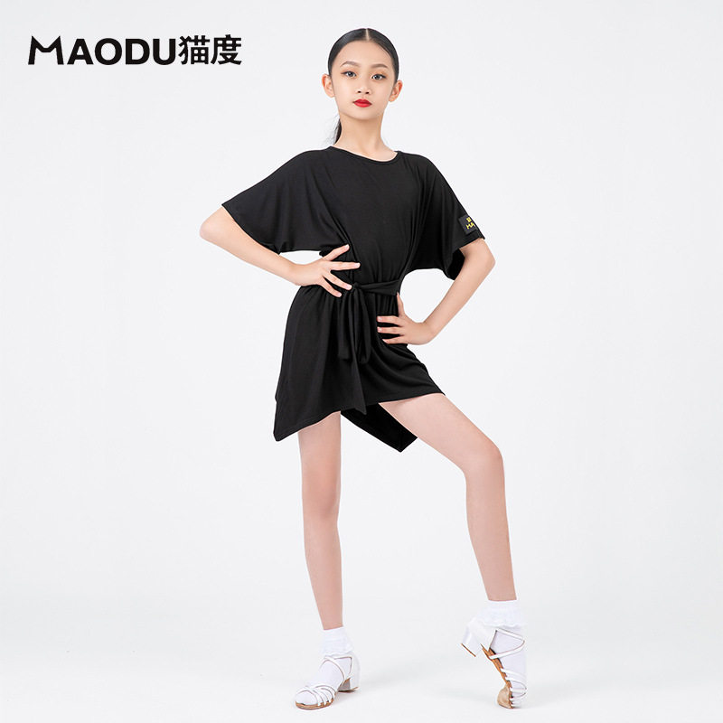 Cat degree Latin dance clothes female children's tops dance clothes practice clothes children's summer training split clothes performance clothes
