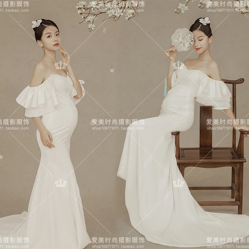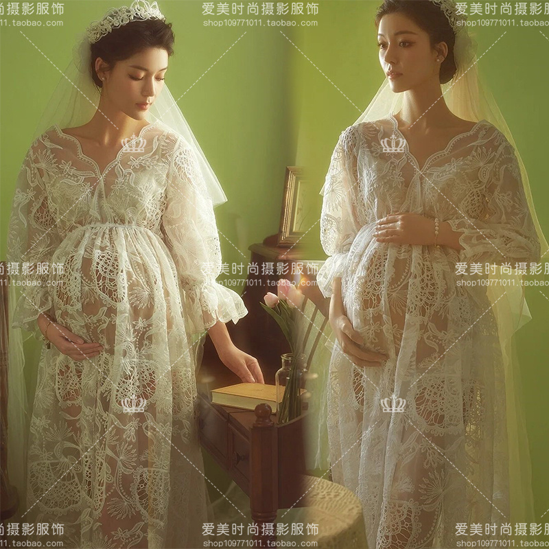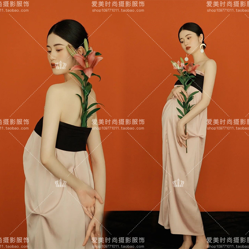Pregnant Woman Photographed Clothing Shadow Building New Style Retro Oil Painting Wind Advanced Sensational Smear Long Skirt Dresses Art Photography-Taobao