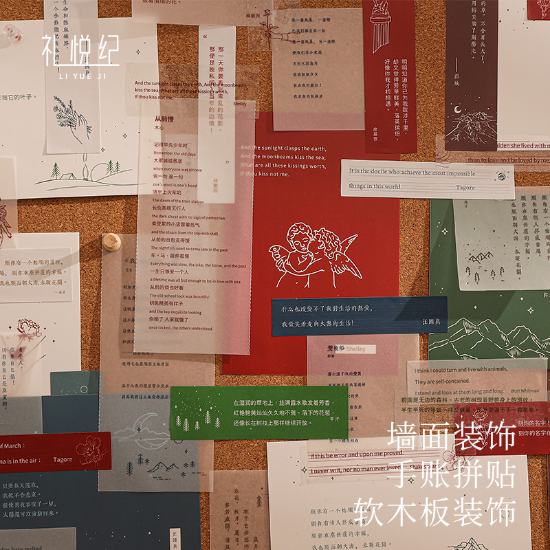Li Yueji) write poetry for you sticker bag ins wind hand account sticker decoration small pattern sulfuric acid paper hand account material sticker tool high-value water cup ipad mobile phone protective shell text sticker paper waterproof