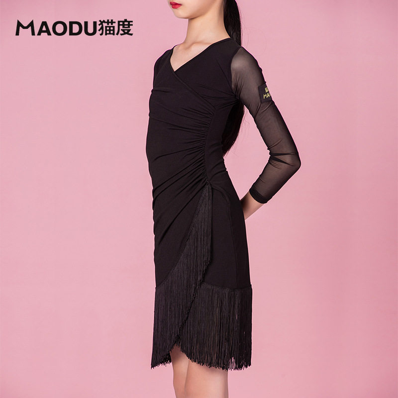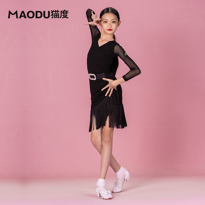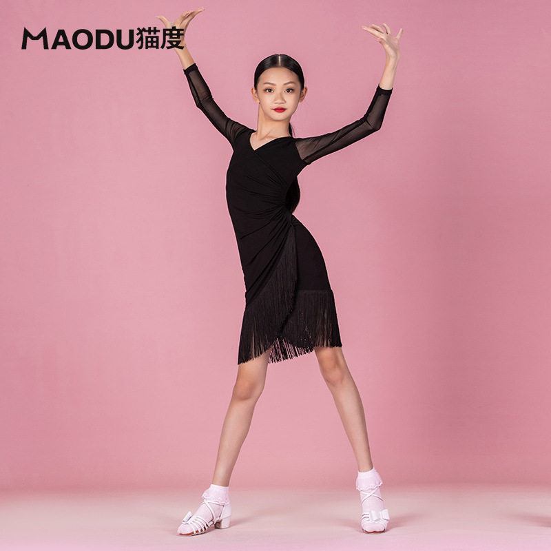 Cat-degree Latin dance performance dress Daughter child flow Su Competition Conserve early childhood autumn/winter professional Latin dance dress rehearsability