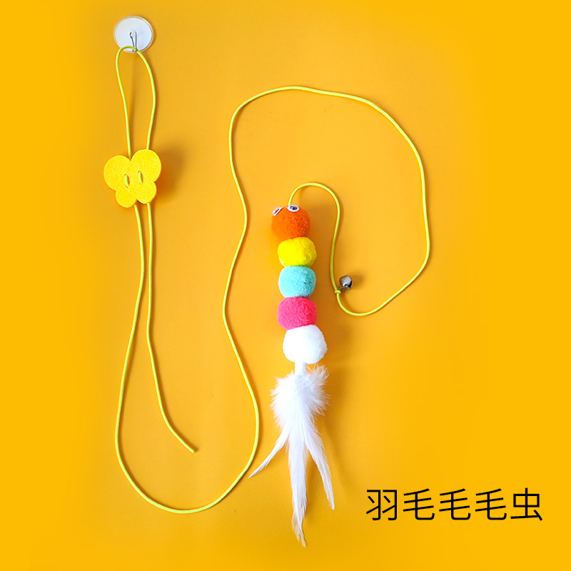 Knocking fun hanging cat-friendly stick retractable adjustable elastic rope toy cat toy feather bell self-healing to relieve boredom