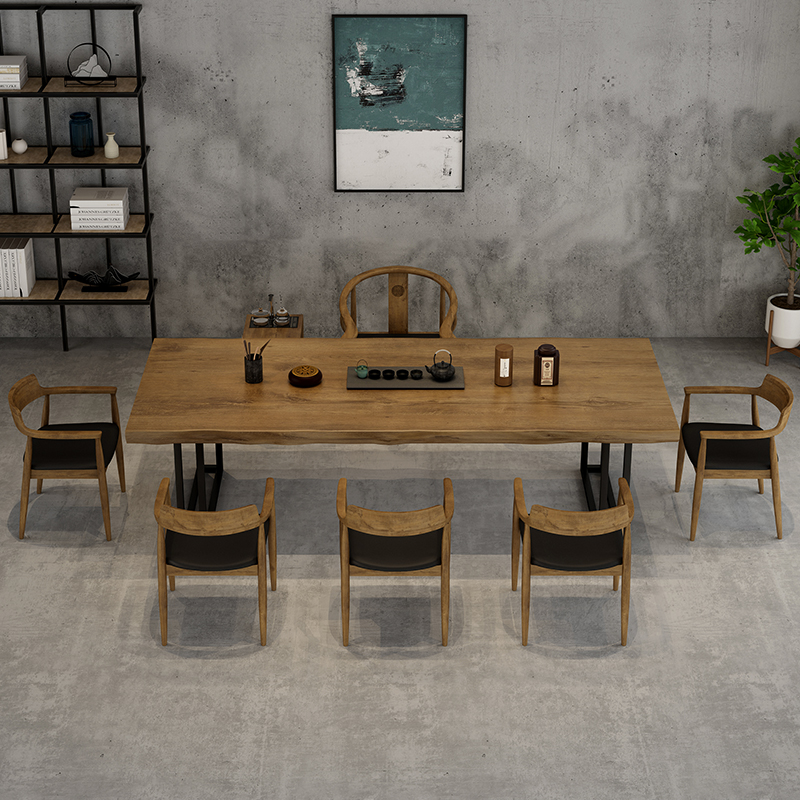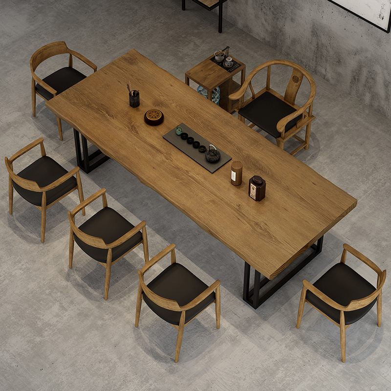 Solid wood tea table and chairs combination office tea table tea table log large plate tea table Kung Fu bubble tea table strip club guests table