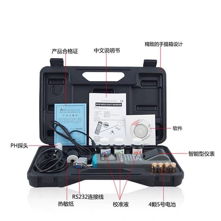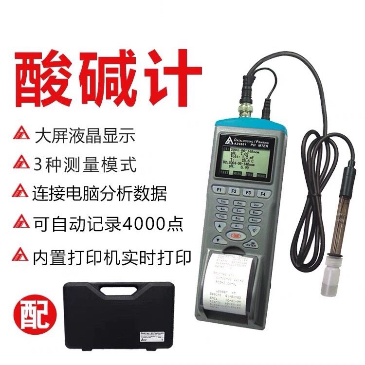 AZ9861 pH PH meter (Bring your own software record programmable printing function) Thermal printing Form 1 cover (3 volumes) PH Correcter liquid 1 cover (PH4 PH7 PH10
