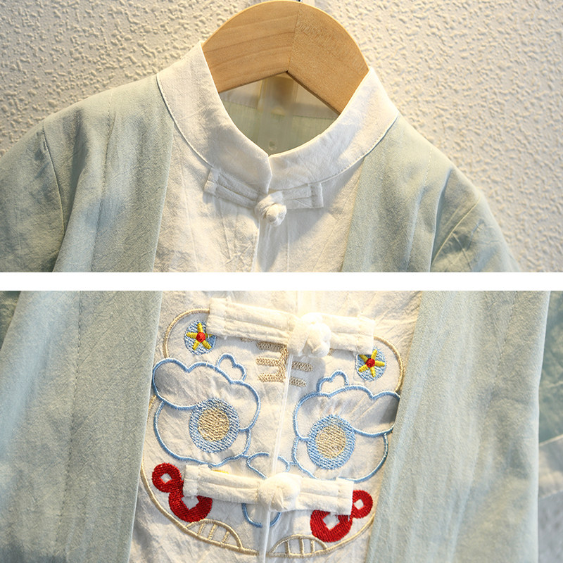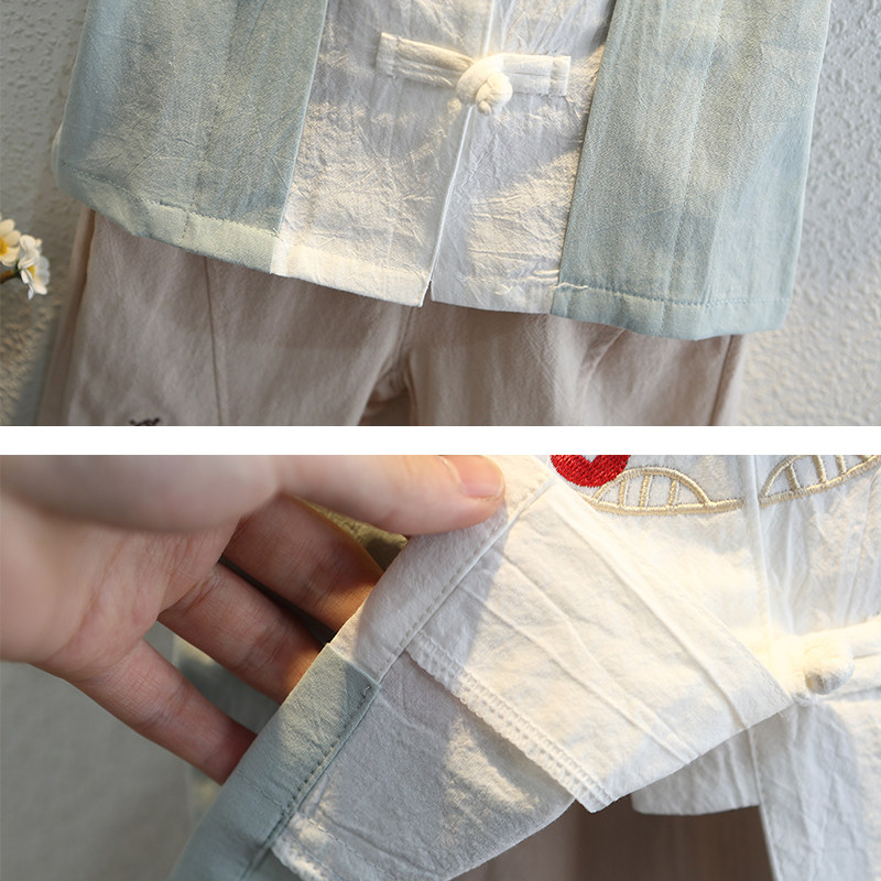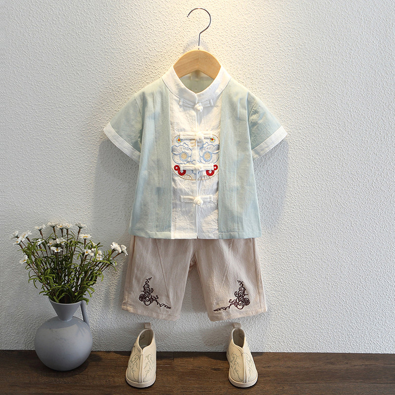 Han - dressed boy 1 summer 2 short sleeves 3 years old baby Chinese wind cotton flax show summer dress national school suit 4 children's Tanghai dress