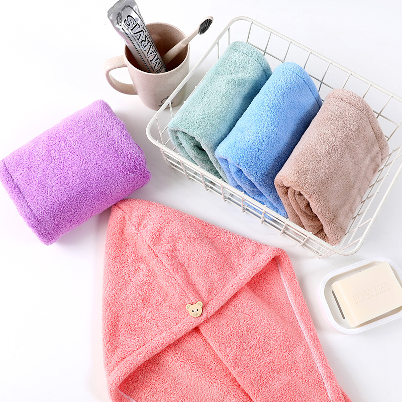 Dry Hair Hat Coral Suede Water Suction Fast Dry Double Layer Thickened Bath Cap Dry Hair Cap Adult Bear Hair Clip Through Bath Cap Dry Hair Hat